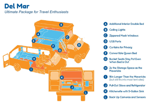 The Del Mar pop-up camper van model is the ultimate luxury package for travel enthusiasts.
